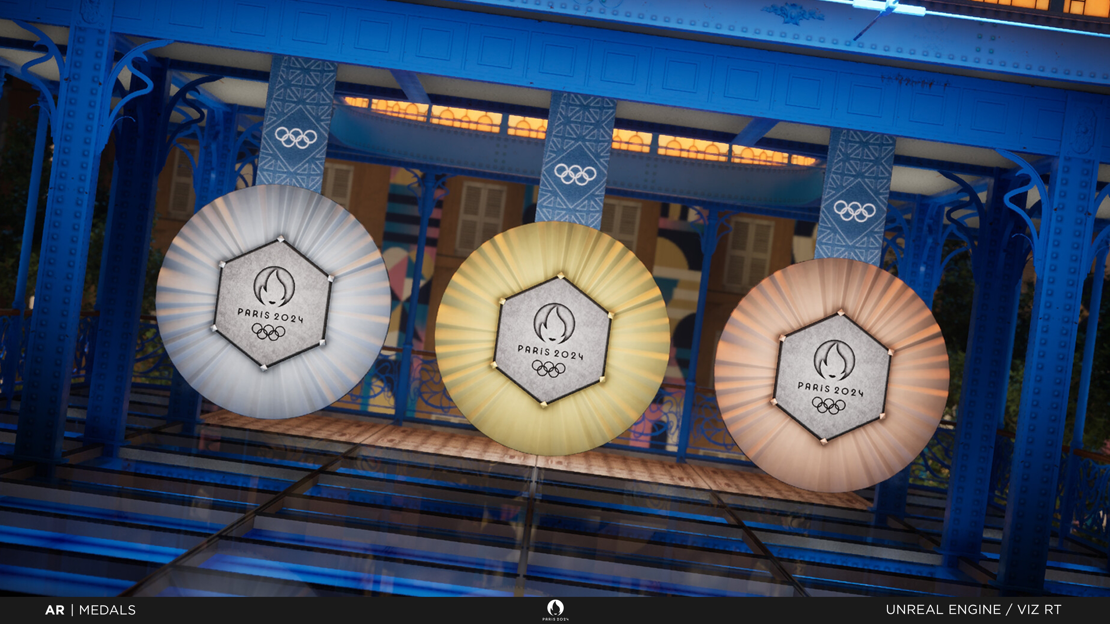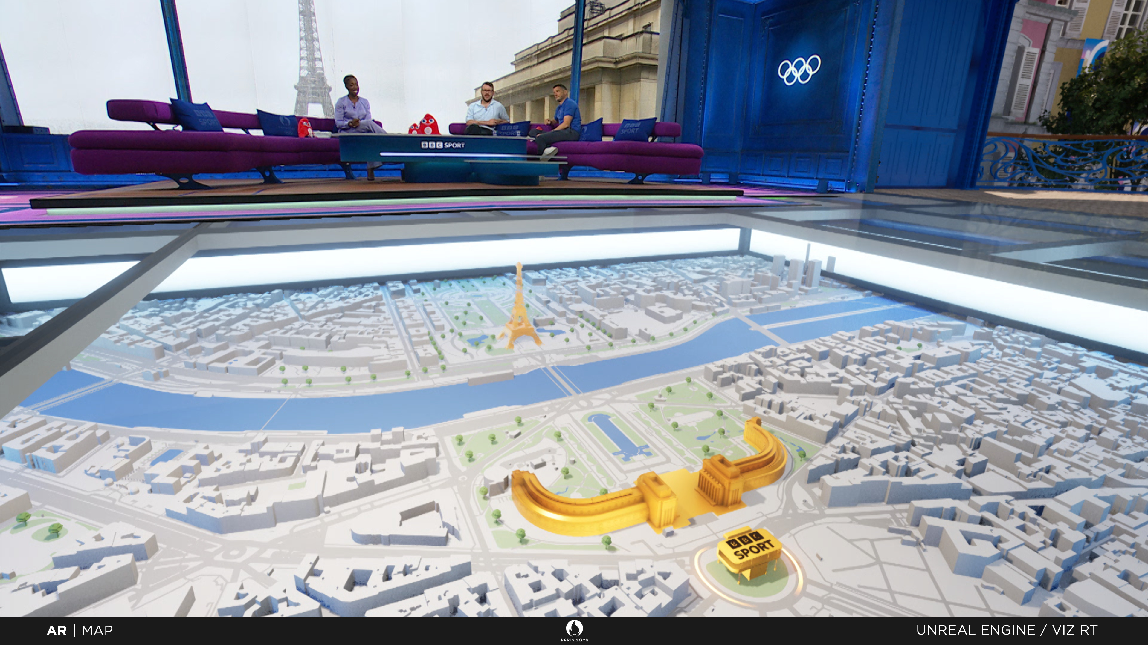 Alongside virtual production, I created the 3D map under the floor and the 3D medals alongside other elements, all with adaptive functionality for editorial purposes & virtual positioning live.