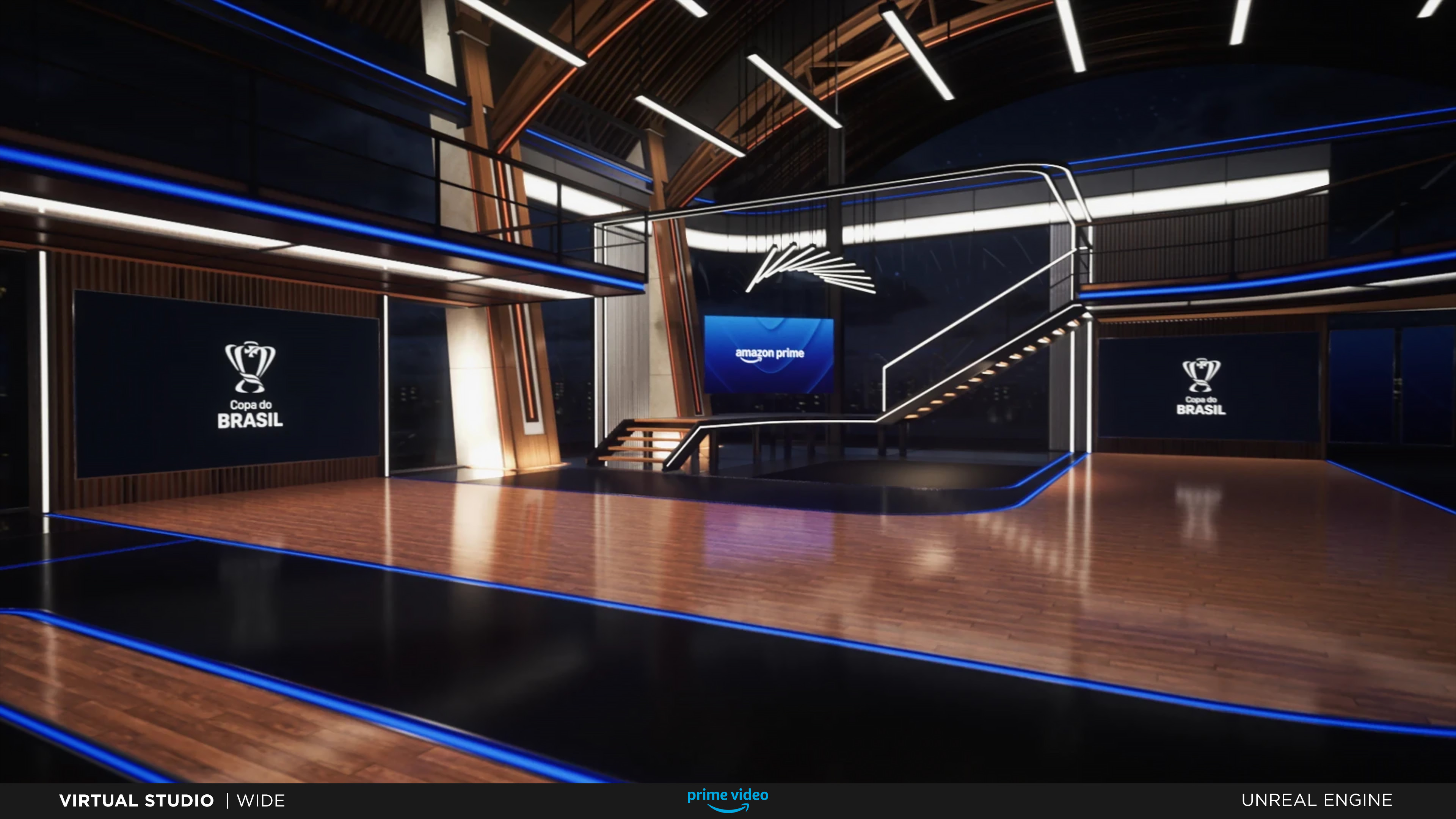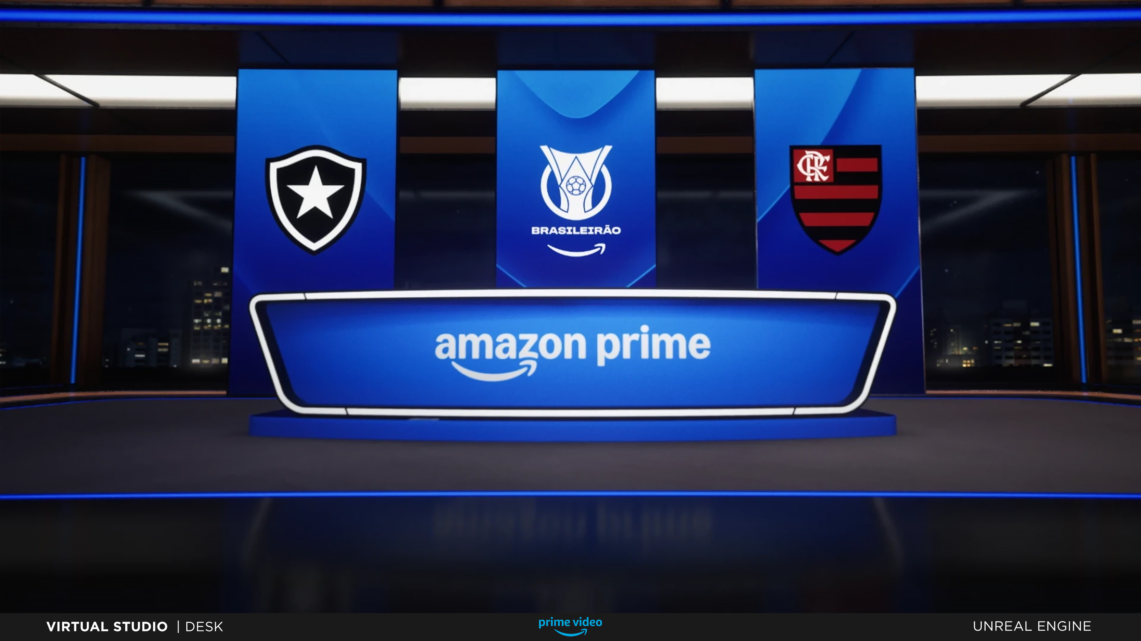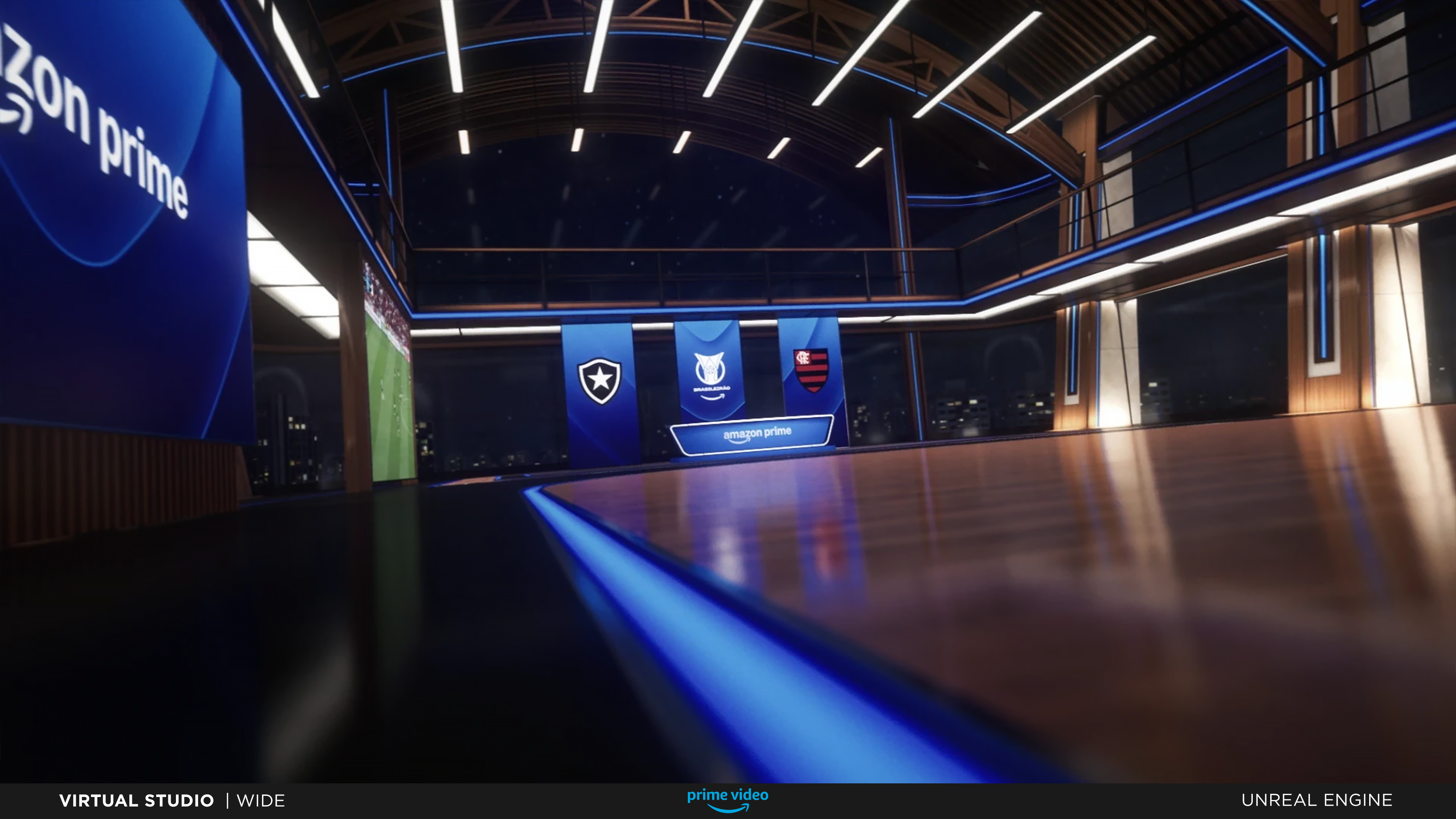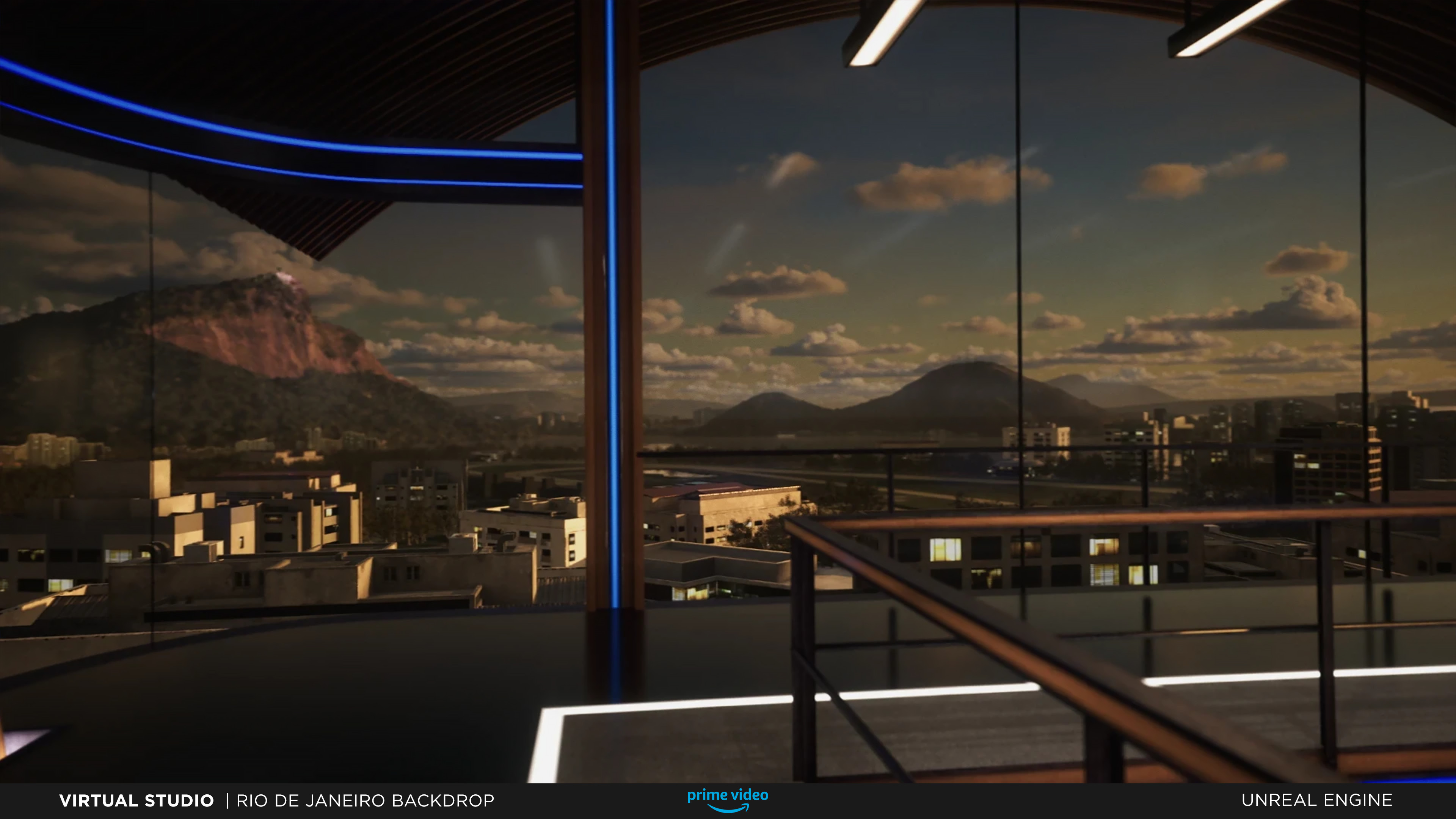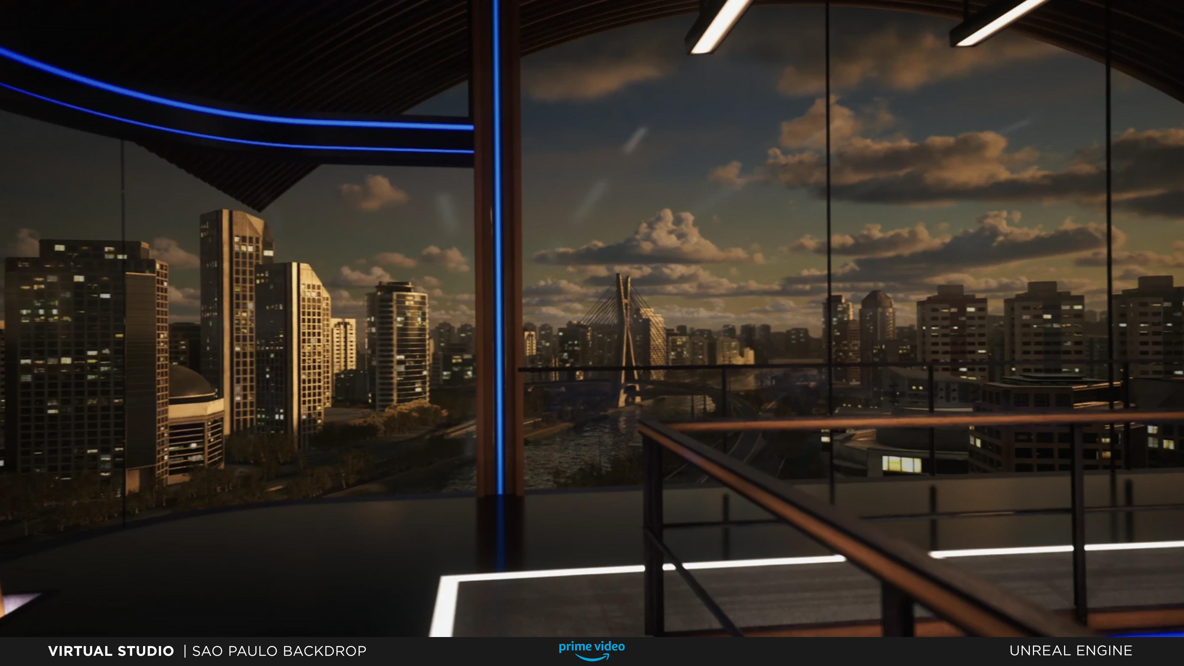 Virtual studio built with 3 full 3D backdrop environments representing 3 major Brazil cities. Dynamic lighting system added linked to the PC's system time for a seamless day/night cycle during a live production.